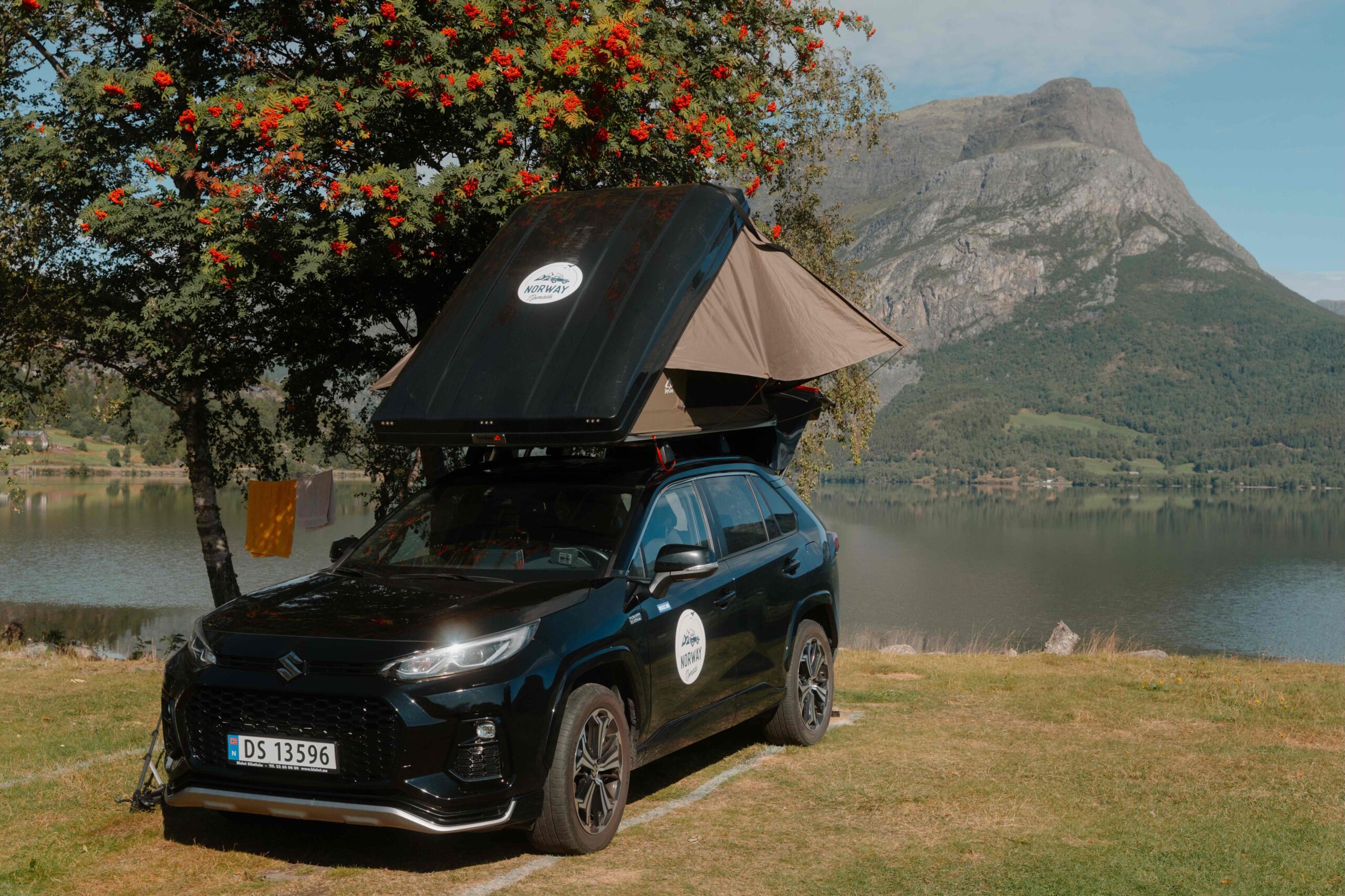• Hébergement idéal : tente de toit sur SUV équipé pour camper dans des lieux exceptionnels face aux fjords