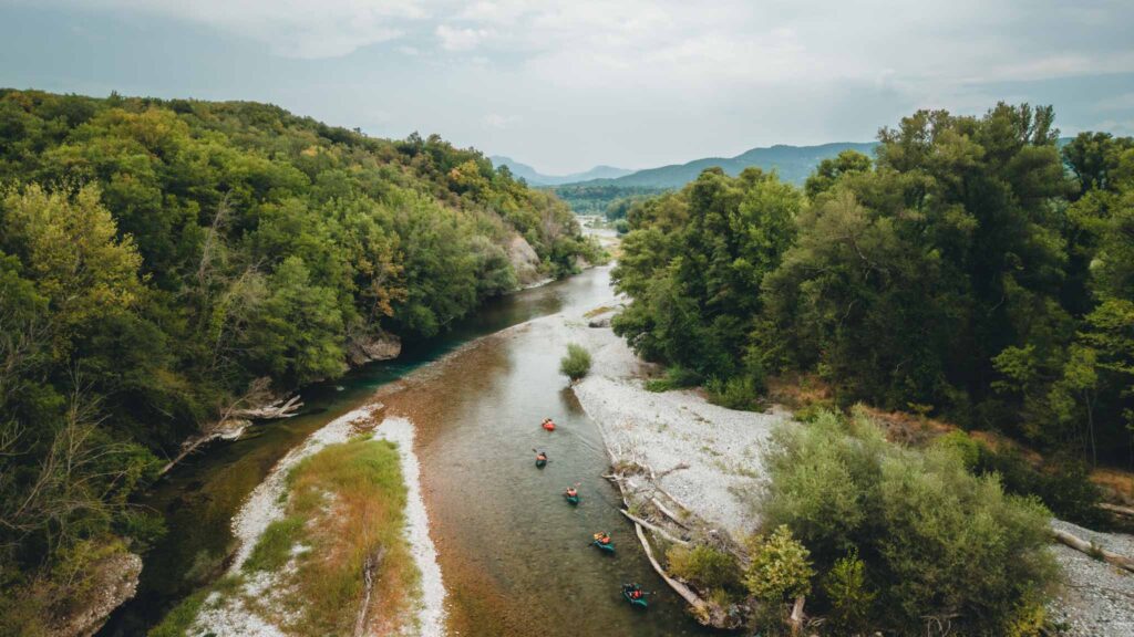 Le dernier jour de votre voyage, découvrez la beauté préservée de la rivière Vjosa, en Albanie, à bord de votre packraft, en pagayant à travers des vallées verdoyantes et une nature sauvage. La Vjosa, dernière rivière sauvage d’Europe, offre un parfait équilibre entre eaux calmes et rapides palpitants.